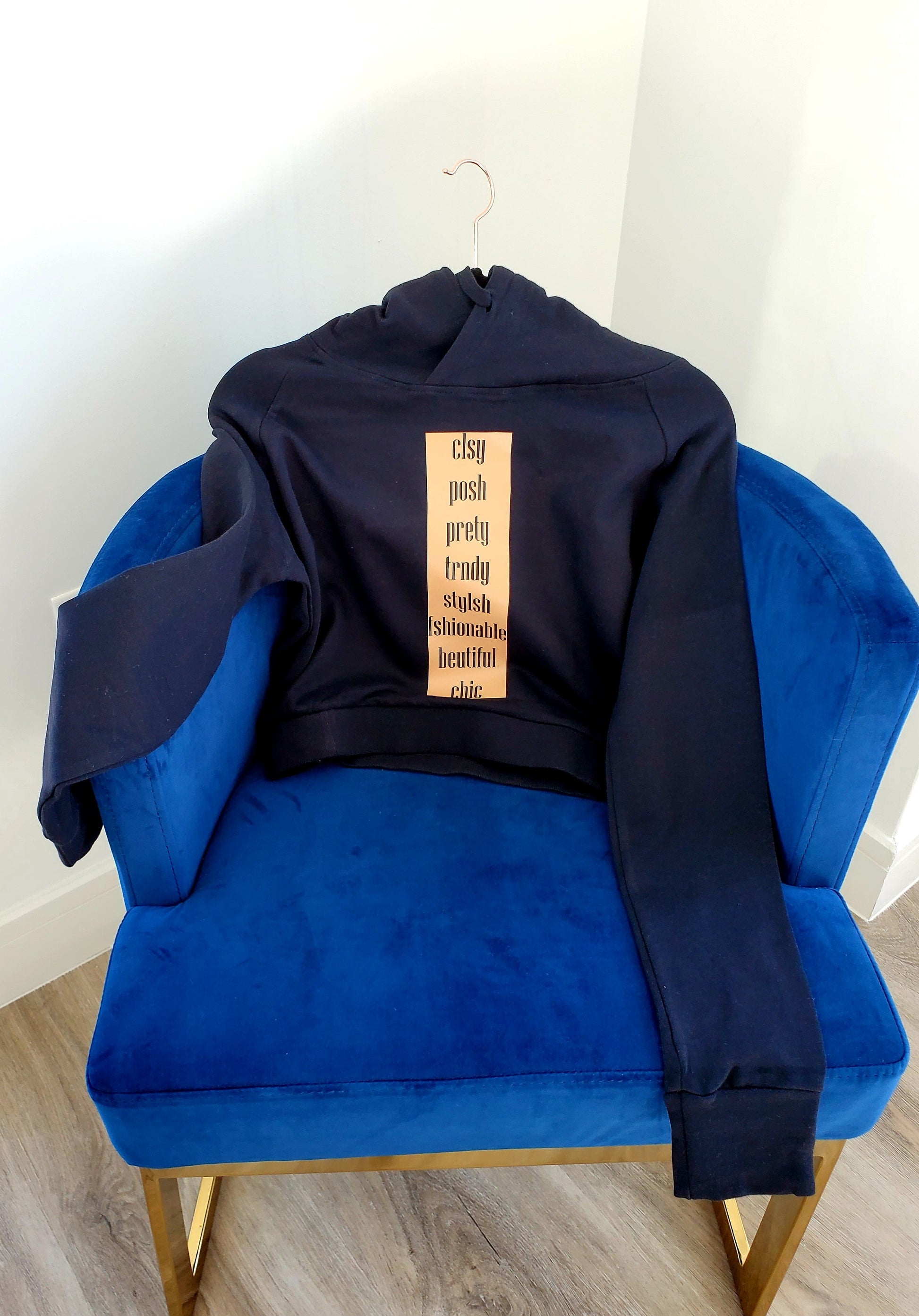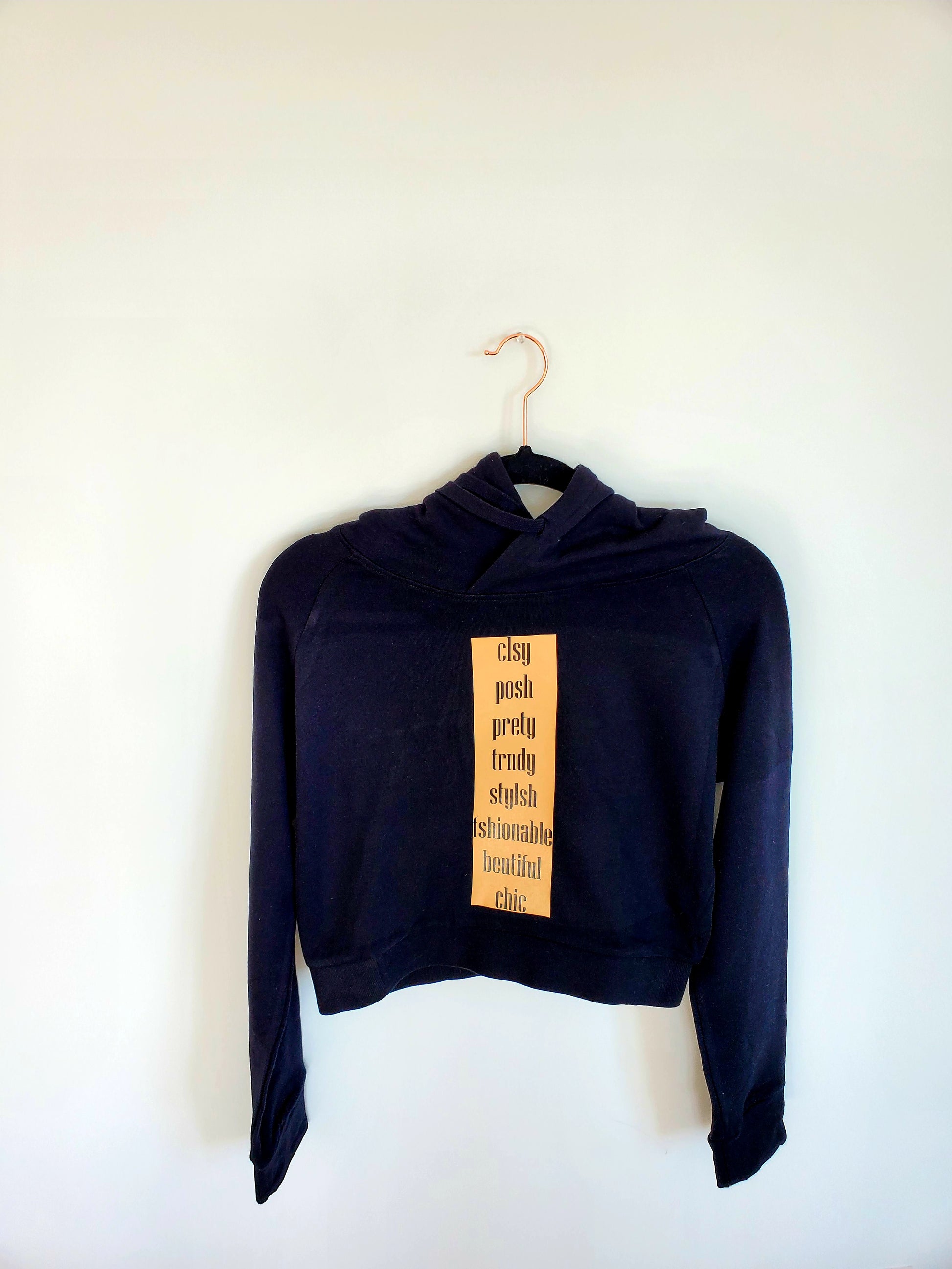 Fits true to size but because it is cropped with a bottom hem, it does fit on the tighter side (not made to be oversized or baggy). This cozy, terry-knit pullover has a cropped cut, hoodie with drawstring closure, and is super comfortable and soft. The bottom hem has a black elastic part to help cinch your silhouette.