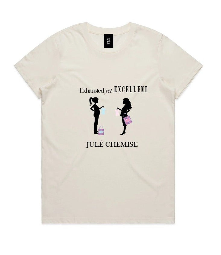 Neck ribbing, neck seam twin needle stitch, shoulder to shoulder tape, double needle hems, preshrunk to minimize shrinkage