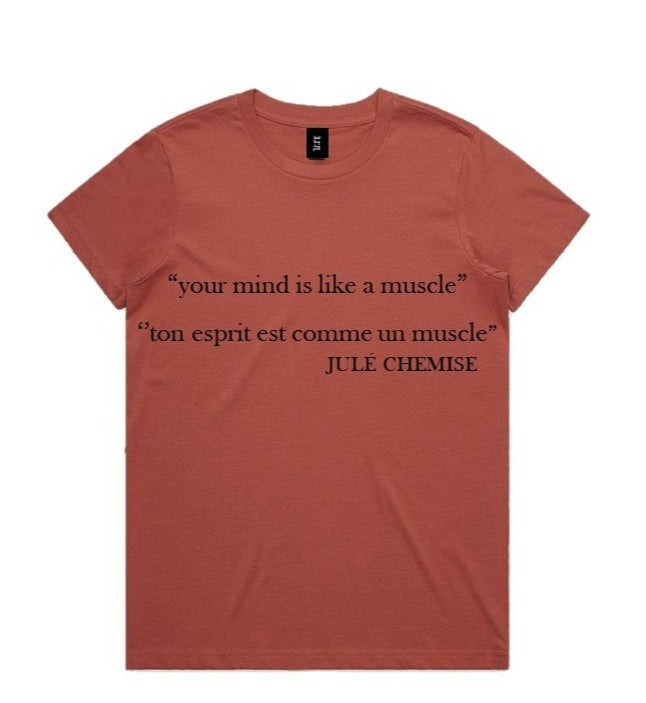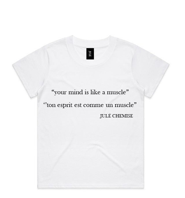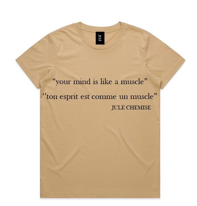 Our minds are a MAJOR component of our life's operating system. It stores the good and the bad. Just like a muscle, it holds memories of what we do on a consistent basis. This shirt is a reminder to muscle your mind in a GOOD direction.